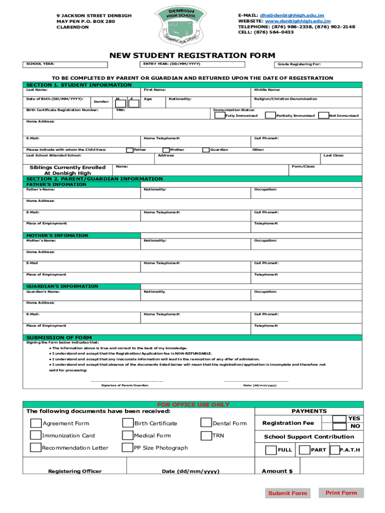 Edit new student registration form. Rearrange and rotate pages, insert new and alter existing texts, add new objects, and take advantage of other helpful tools. Click Done to apply changes and return to your Dashboard. Go to the Documents tab to access merging, splitting, locking, or unlocking functions.
