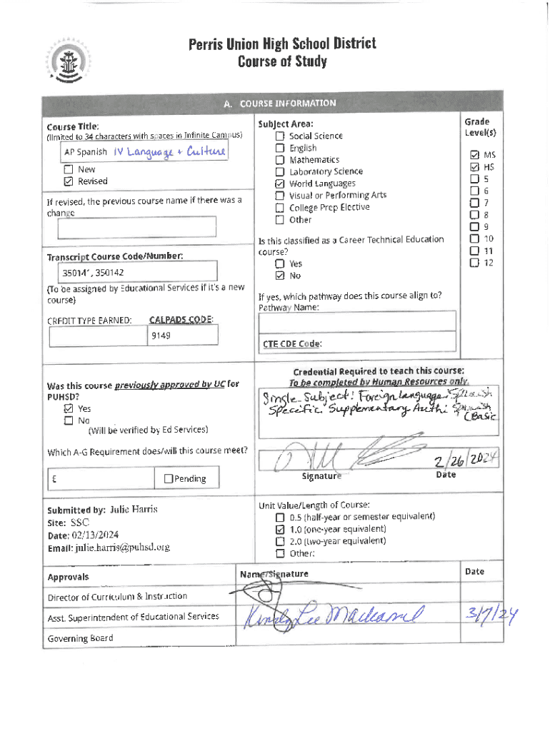 Get the free AP Spanish Course of Study Form