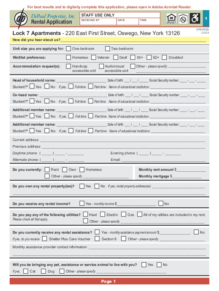 For best results and to digitally complete this application, please open in Adobe Acrobat Reader. DePaul Properties, Inc.