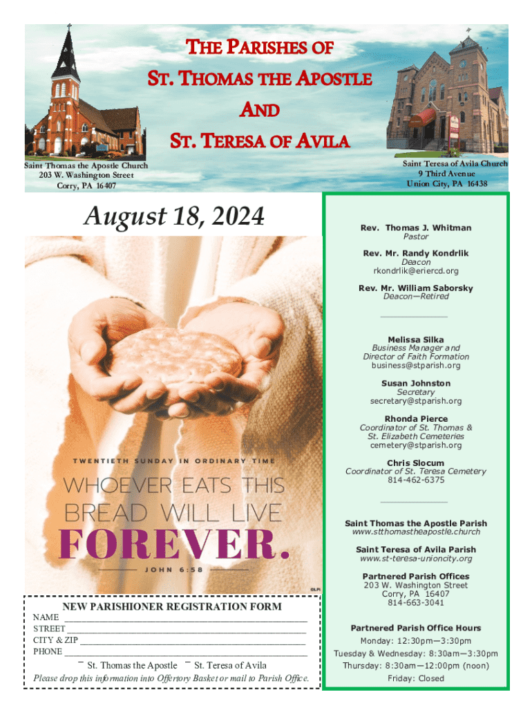 Register as a new parishioner for St. Thomas the Apostle and St. Teresa of Avila. Join our community and get involved in various parish activities.