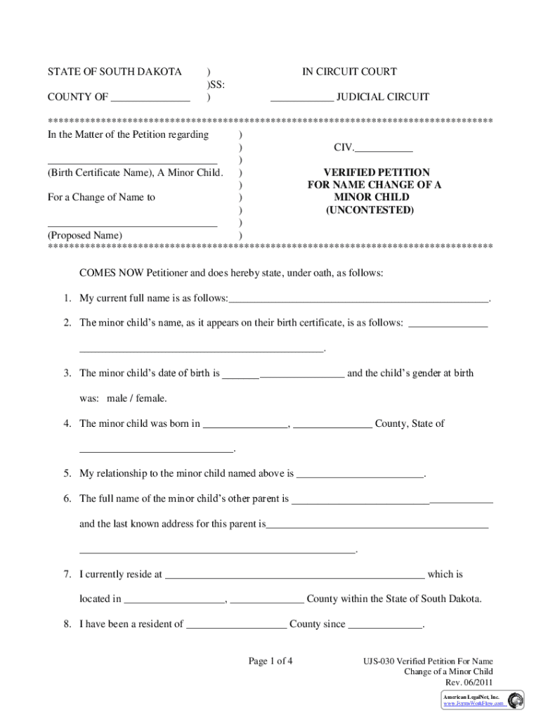 STATE OF SOUTH DAKOTA COUNTY OF ___) )SS: )IN CIRCUIT COURT ___ JUDICIAL CIRCUIT************************************************************************************ In the Matter of the Petition regarding