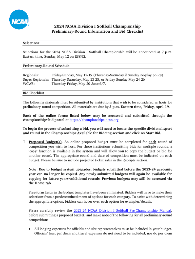 Selections for the 2024 NCAA Division I Softball Championship will be announced at 7 p.m.
