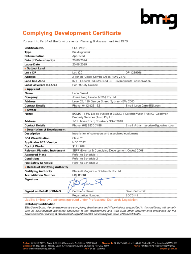 Get the free Complying Development CertificatesSingleton Council