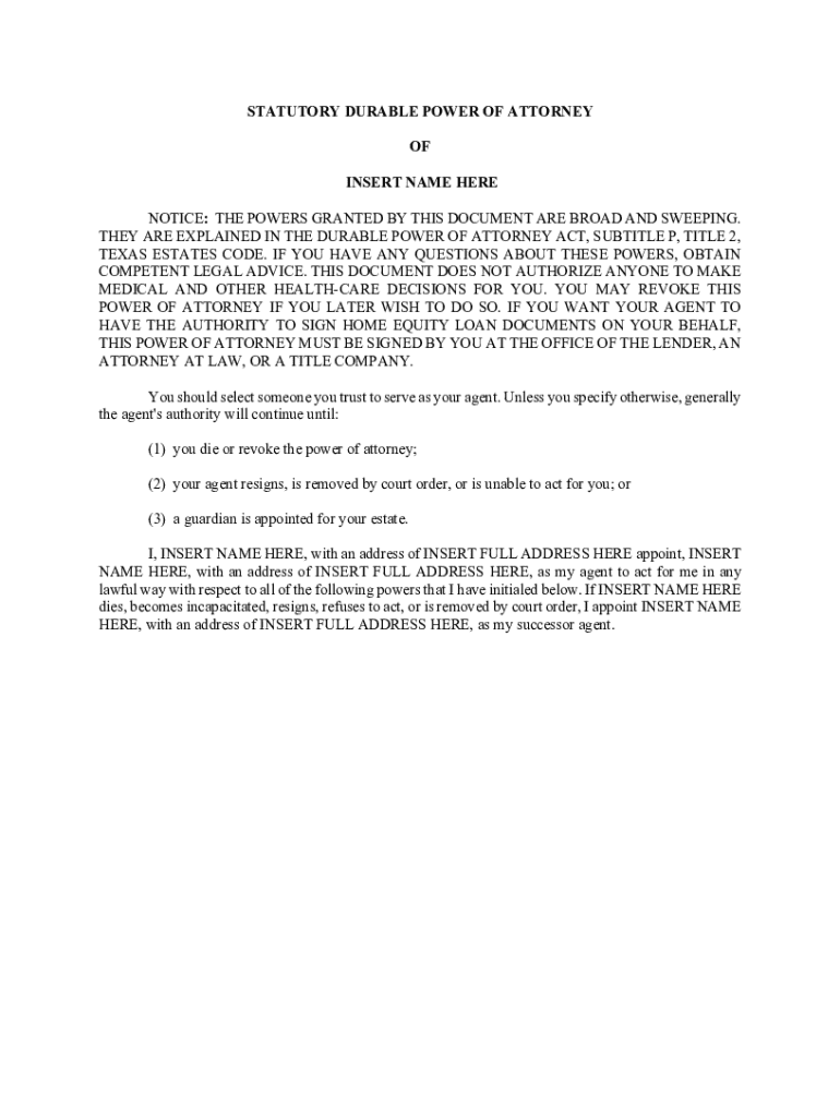 Get the free Statutory Durable Power of Attorney