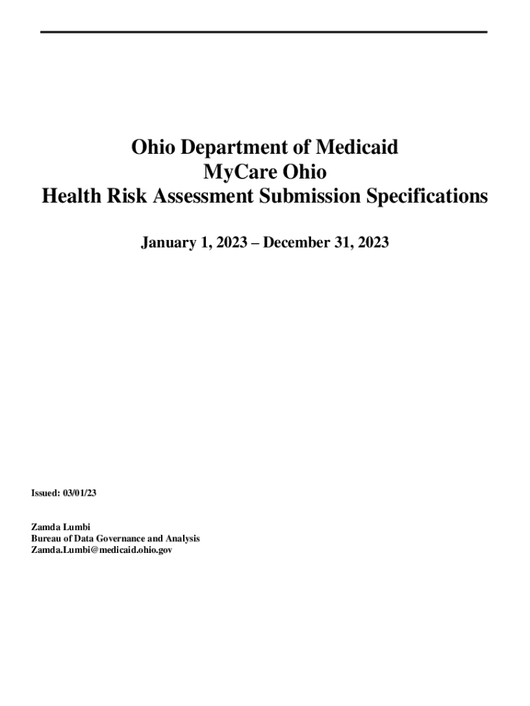 Ohio Department of Medicaid Mylar Ohio Health Risk Assessment Submission Specifications January 1, 2023, December 31, 2023Issued: 03/01/23Zamda Alumni Bureau of Data Governance and Analysis Zamda.Lumbi@medicaid.ohio.govTable