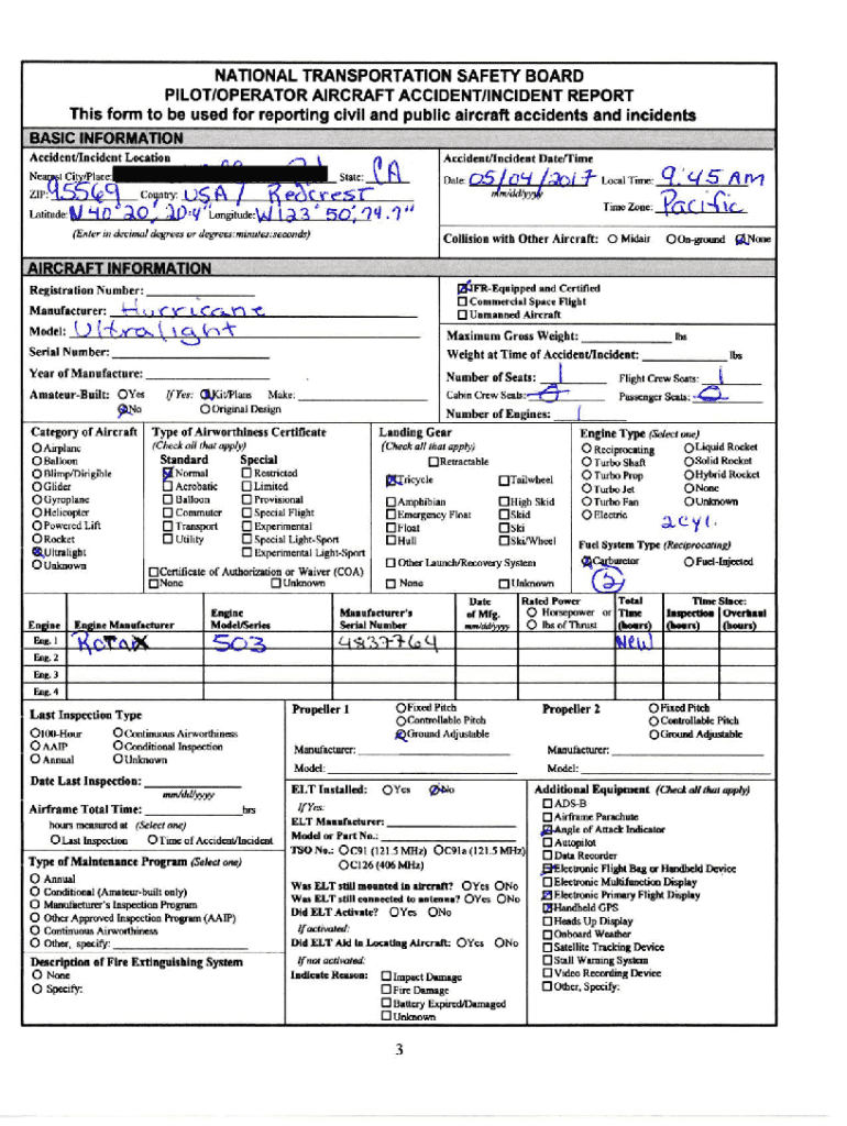 NATIONAL TRANSPORTATION SAFETY BOARD PILOT/OPERATOR AIRCRAFT ACCIDENT/INCIDENT REPORT This form to be used for reporting civil and public aircraft accidents and incidents BASIC INFORMATION AUW.Uncle