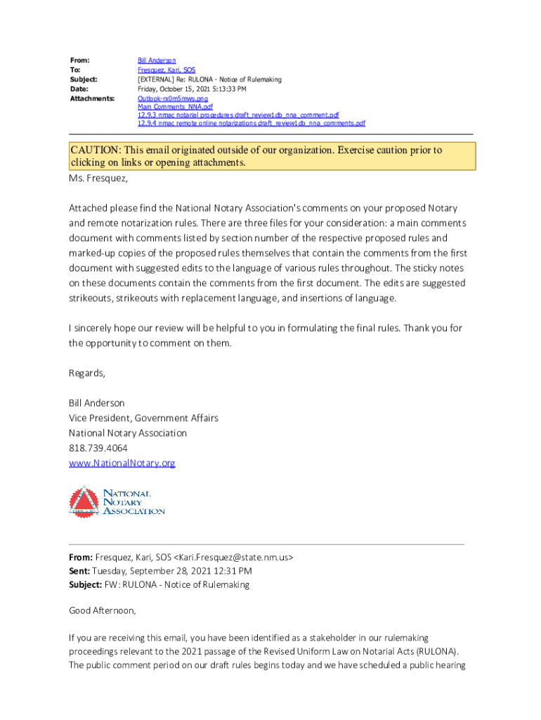From: To: Subject: Date: Attachments:Bill Anderson Frequent, Kari, SOS [EXTERNAL] Re: RULING Notice of Rule making Friday, October 15, 2021 5:13:33 PM Outlookrx0m5mws.png Main Comments_NNA.pdf 12.9.3