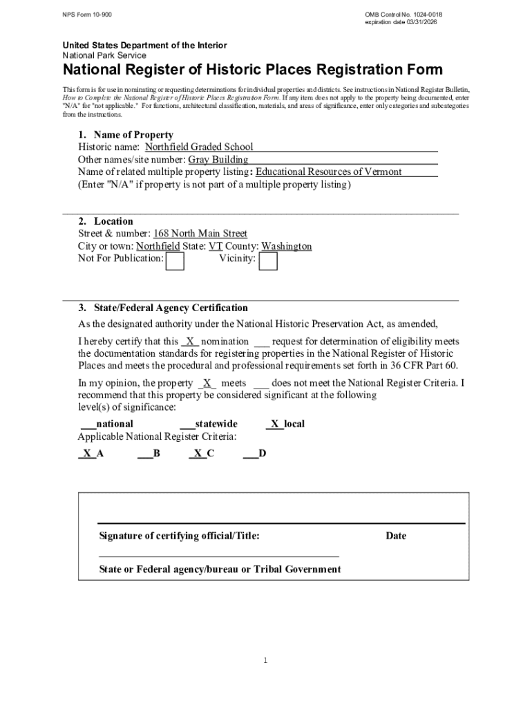 Get the free Nps Form 10-900 - outside vermont