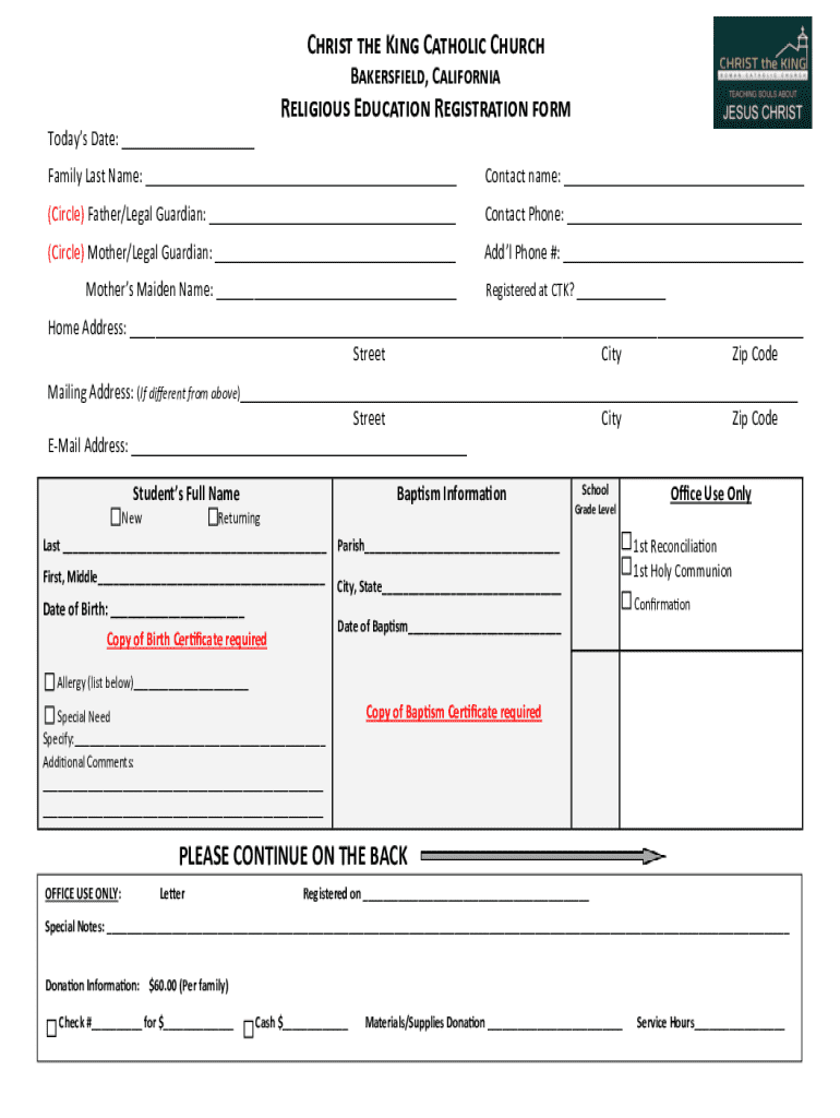 Get the free Religious Education Registration Form