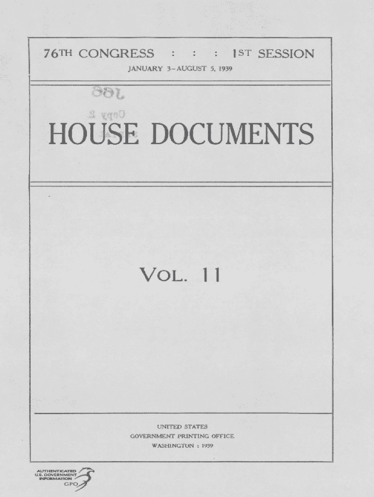 76TH CONGRESS JANUARY::3AUGUST:ST SESSION5, 1939HOUSE Documents.GOVERNMENT1PRINTING OFFICEJ66Copy 2. SERIAL/0372076th Congress,1st SessionSECOND4ANNUALHouseDocumentREPORTOFTHEPRESIDENT PHILIPPINES