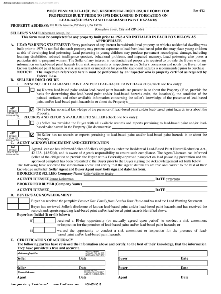 Get the free Residential Disclosure Form