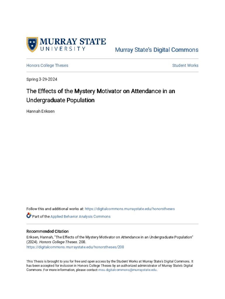 Murray State\'s Digital Commons Honors College ThesesStudent WorksSpring 3292024The Effects of the Mystery Motivator on Attendance in an Undergraduate Population Hannah EriksenFollow this and additional