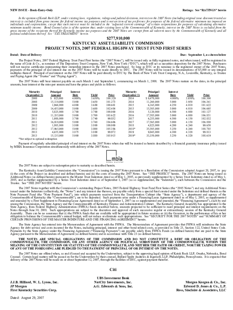NEW ISSUE BookEntryOnlyRatings: See RATINGS herein In the opinion of Kulak Rock LLP, under existing laws, regulations, rulings and judicial decisions, interest on the 2007 Notes (including original