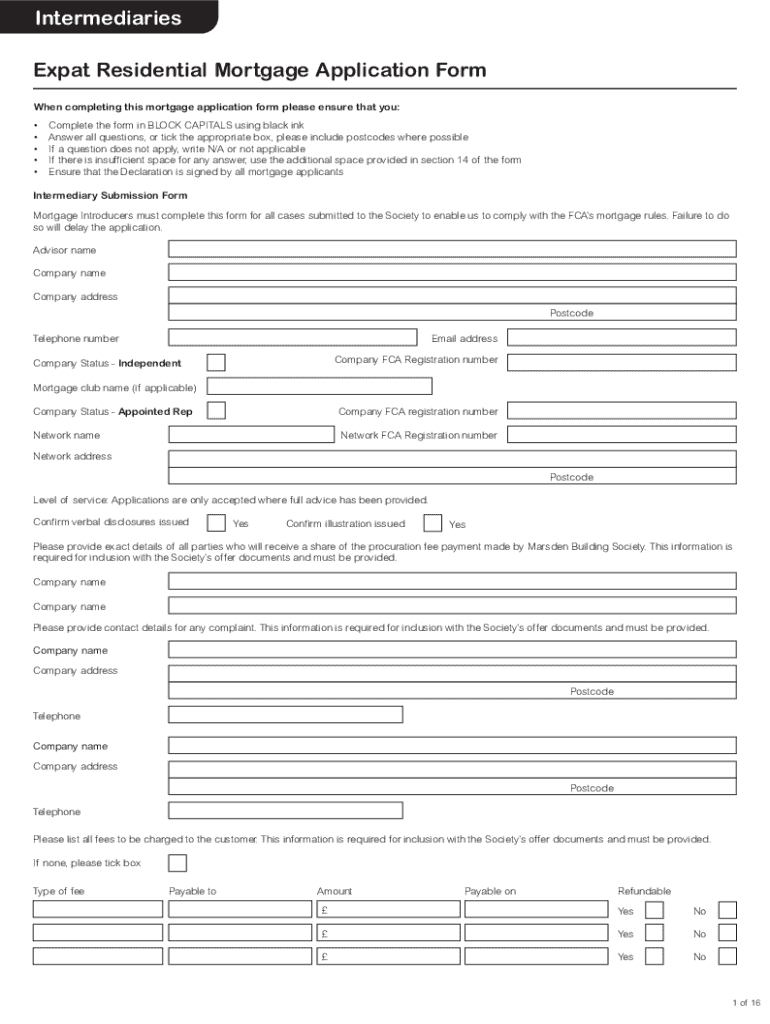 Intermediaries Expat Residential Mortgage Application Form When completing this mortgage application form please ensure that you: Complete the form in BLOCK CAPITALS using black ink Answer all questions,