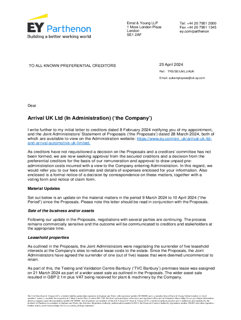 Get the free Arrival Uk Ltd Administration Letter