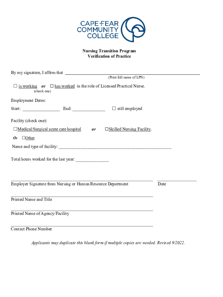 Get the free Nursing Transition Program Verification of Practice By my signature ...