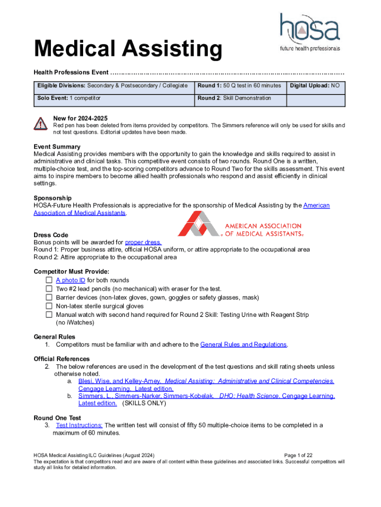Get the free Guide to HOSA Medical Assisting Competitive Event