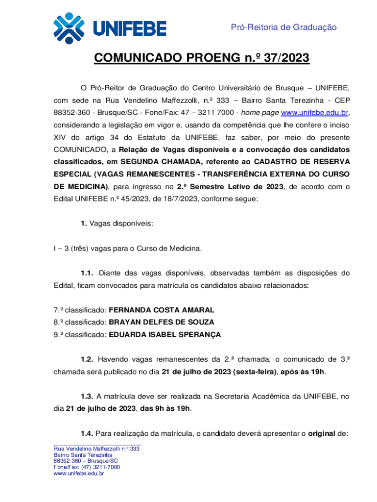 Pretoria de GraduaoCOMUNICADO PRONG n. 37/2023