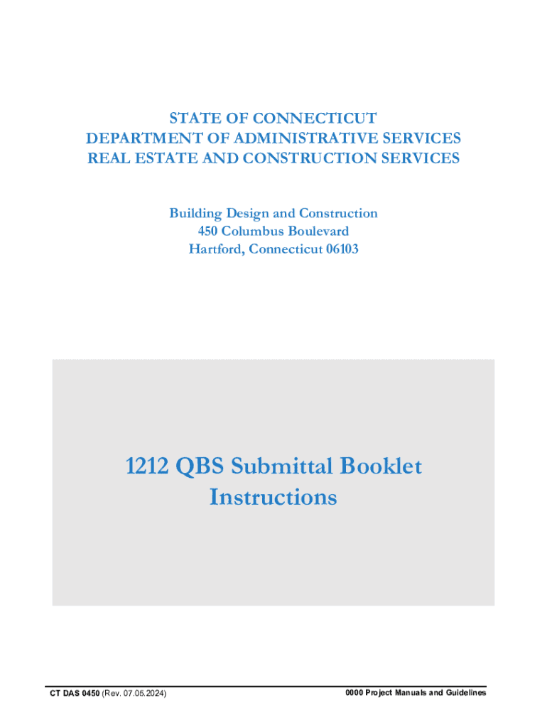 The 1212 QBS Submittal Booklet is a standardized form used to report qualifications for specific projects under the Qualification Based Selection (QBS) process, primarily in government contracting.