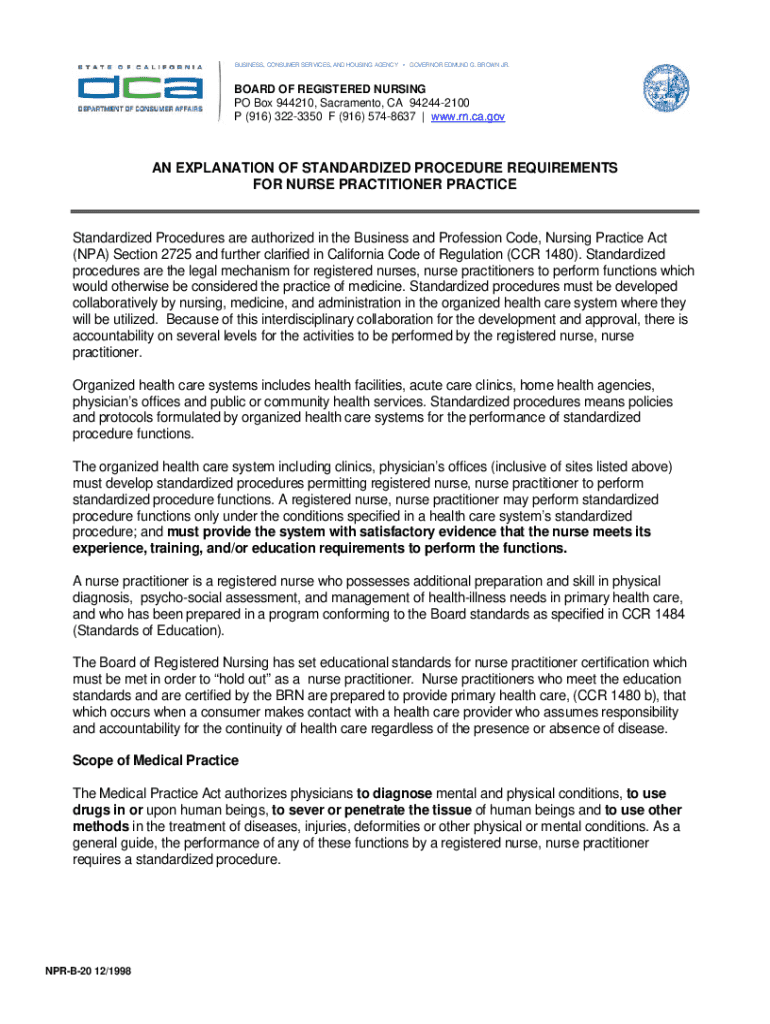 BUSINESS, CONSUMER SERVICES, AND HOUSING AGENCY GOVERNOR EDMUND G. BROWN JR.BOARD OF REGISTERED NURSING PO Box 944210, Sacramento, CA 942442100 P (916) 3223350 F (916) 5748637 | www.rn.ca.govAN EXPLANATION