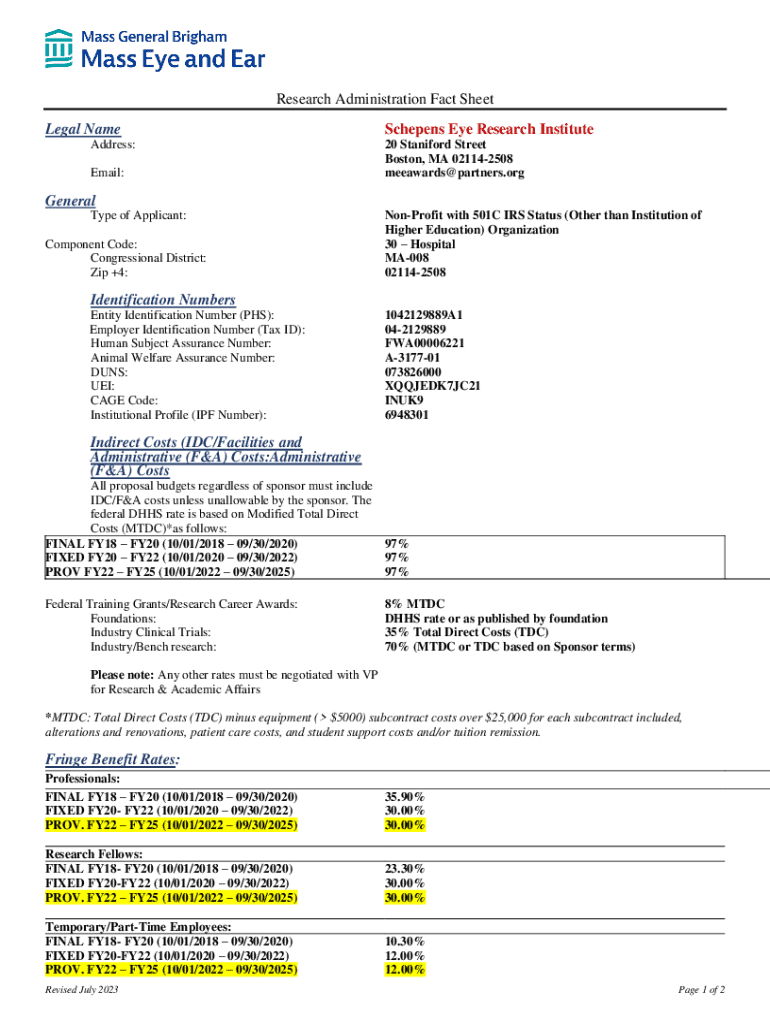 Get the free Research Administration Fact Sheet Legal Name Schepens Eye ...