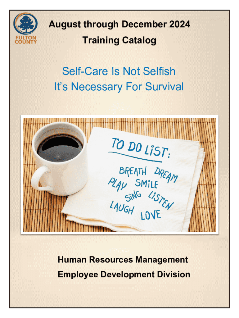 Explore the 2024 training catalog for Fulton County employees, featuring essential self-care and professional development courses to enhance workplace skills.