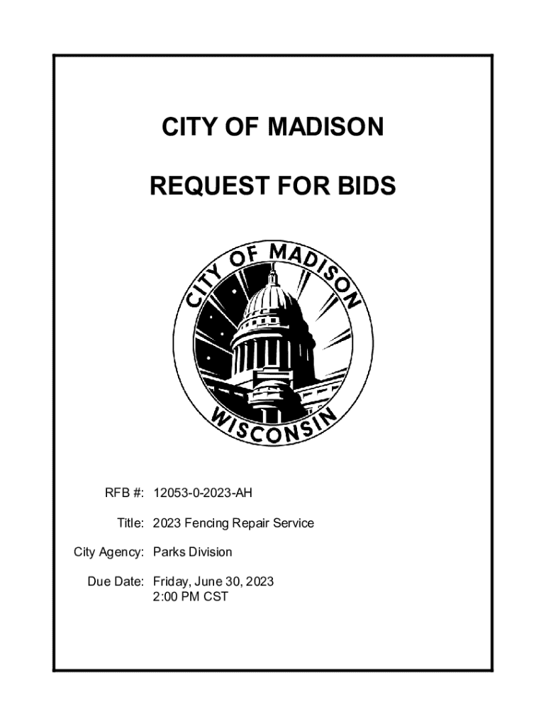 CITY OF MADISON REQUEST FOR BIDS #: 1205302023AH Title: 2023 Fencing Repair Service City Agency: Parks Division Due Date: Friday, June 30, 2023 2:00 PM REQUEST FOR BIDS # 1205302023AHTable of Contents