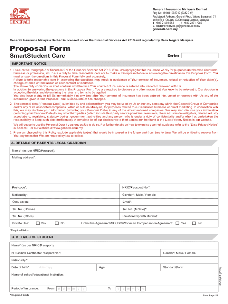 Get the free SmartStudent Care Proposal Form (EM) (U10324)