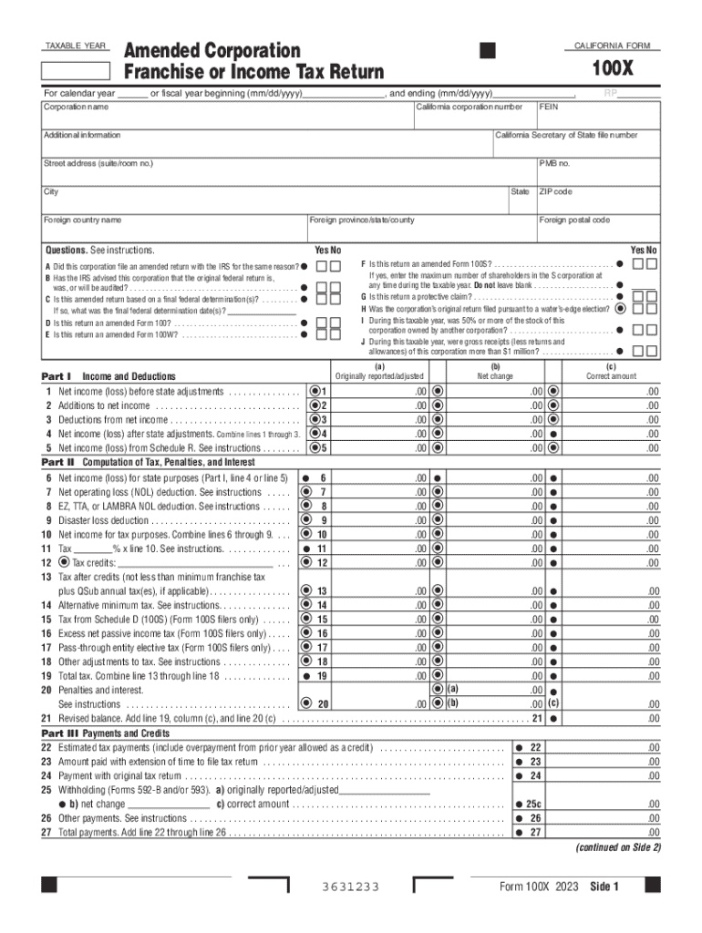 TAXABLE Year calendar yearAmended Corporation Franchise or Income Tax Return or fiscal year beginning (mm/dd/YYY)CALIFORNIA FORM100X, and ending (mm/dd/YYY)Corporation name. California corporation