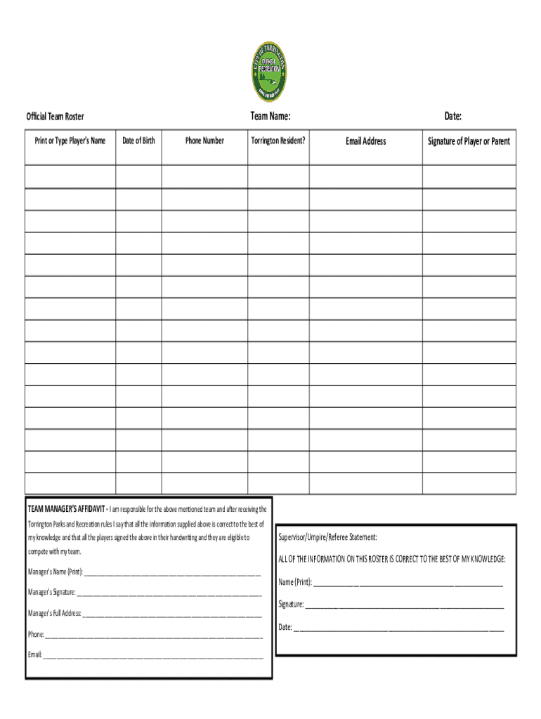 Print or Type Players NameD ate of Birthstone NumberTorrington Resident? Date: