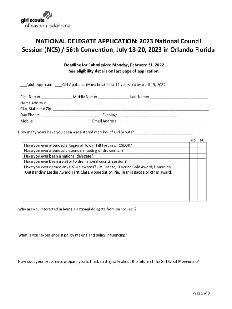NATIONAL DELEGATE APPLICATION: 2023 National Council Session (NCS) / 56th Convention, July 1820, 2023 in Orlando Florida Deadline for Submission: Monday, February 21, 2022, See eligibility details