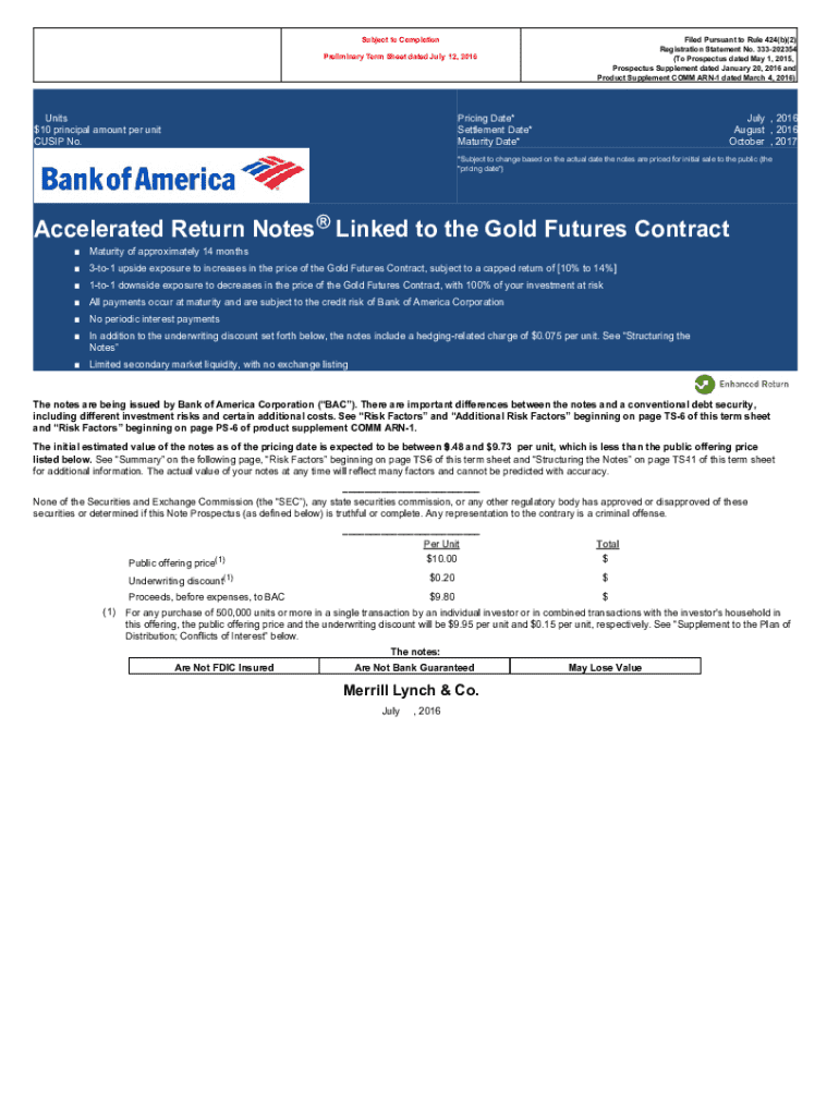 Subject to Completion Preliminary Term Sheet dated July 12, 2016Units $10 principal amount per unit CUSIP No.Filed Pursuant to Rule 424(b)(2) Registration Statement No. 333202354 (To Prospectus dated