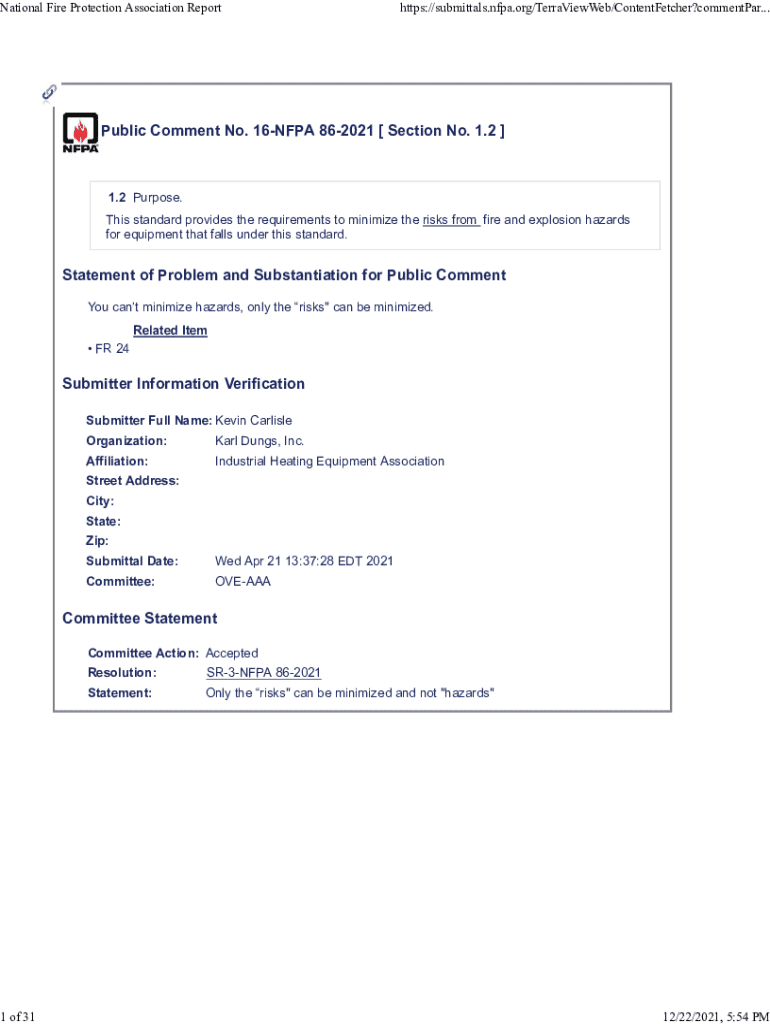 National Fire Protection Association Reporthttps://submittals.nfpa.org/TerraViewWeb/ContentFetcher?commentPar... Public Comment No. 16NFPA 862021 [Section No. 1.2]1.2 Purpose. This standard provides