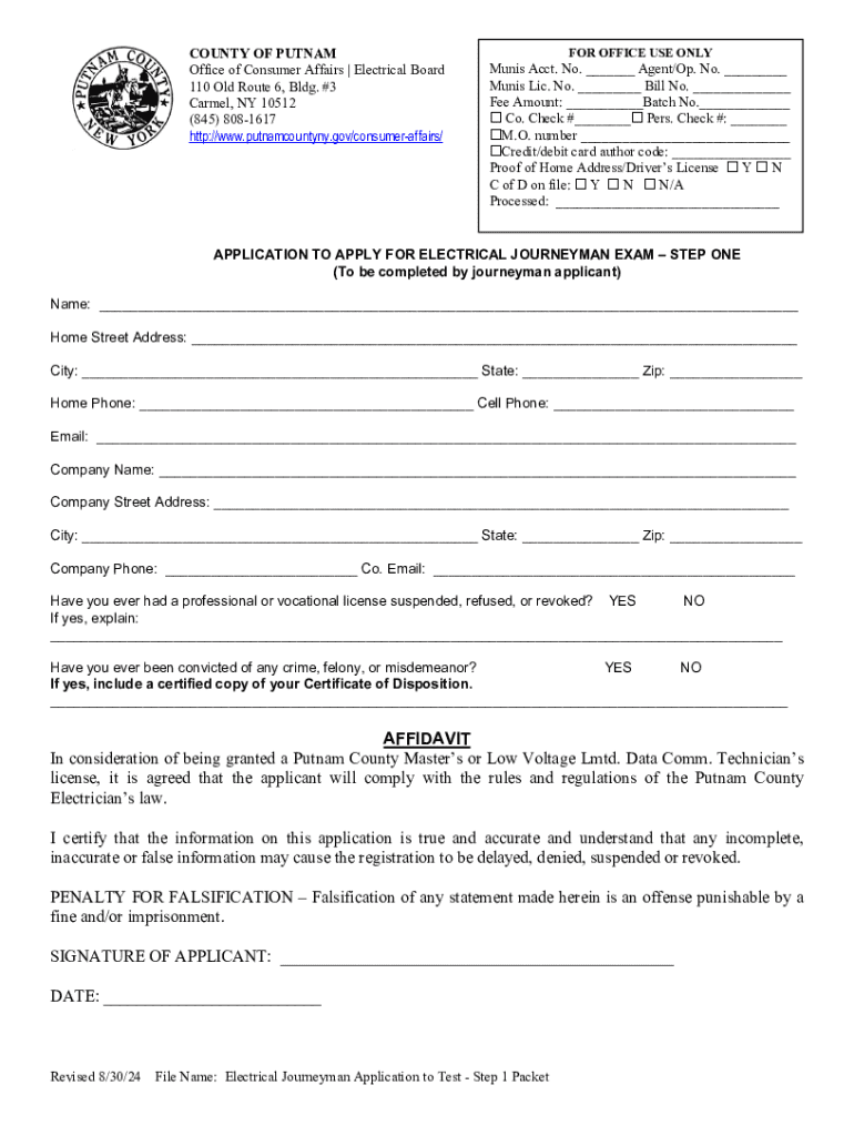Discover the comprehensive steps to obtain your Putnam County Electrical Journeyman License including required documentation and fees for 2024.