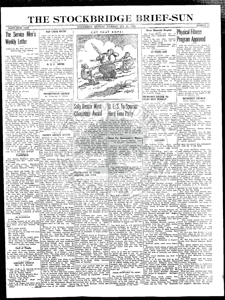 MICHIGAN. THURSDAY. JAN. 21. 1943, 7FORTIFIFTH Wearing Service Men\'weekly Letter