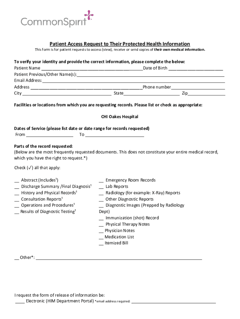 The patient access request form is a document that allows patients to request access to their personal health information held by healthcare providers.
