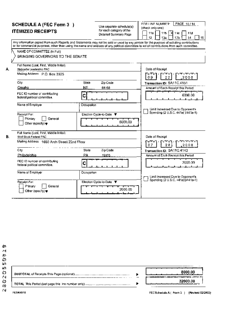 SCHEDULE A (FEC Form 3)
