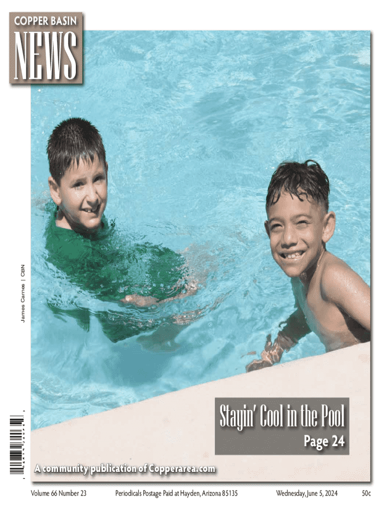 COPPER BASIN James Barnes | CBNNEWSStayin Cool in the Pool Page 24A community publication of Copperarea.com Volume 66 Number 23Periodicals Postage Paid at Hayden, Arizona 85135Wednesday, June 5, 2024502