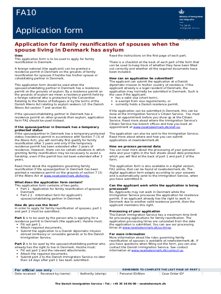 - You can set extra security like user verification via picture or password. There is an folder encryption option. Just put your A foreign national (the applicant) can be granted a residence permit in Denmark on the grounds of family reunification for spouses if he/she has his/her spouse or cohabitating partner in Denmark fillable form and set a password.