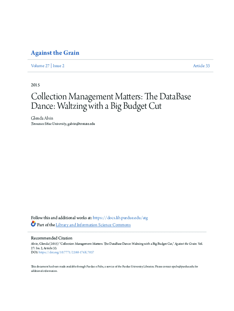 Volume 27 | Issue 2Article 332015Collection Management Matters: The Database