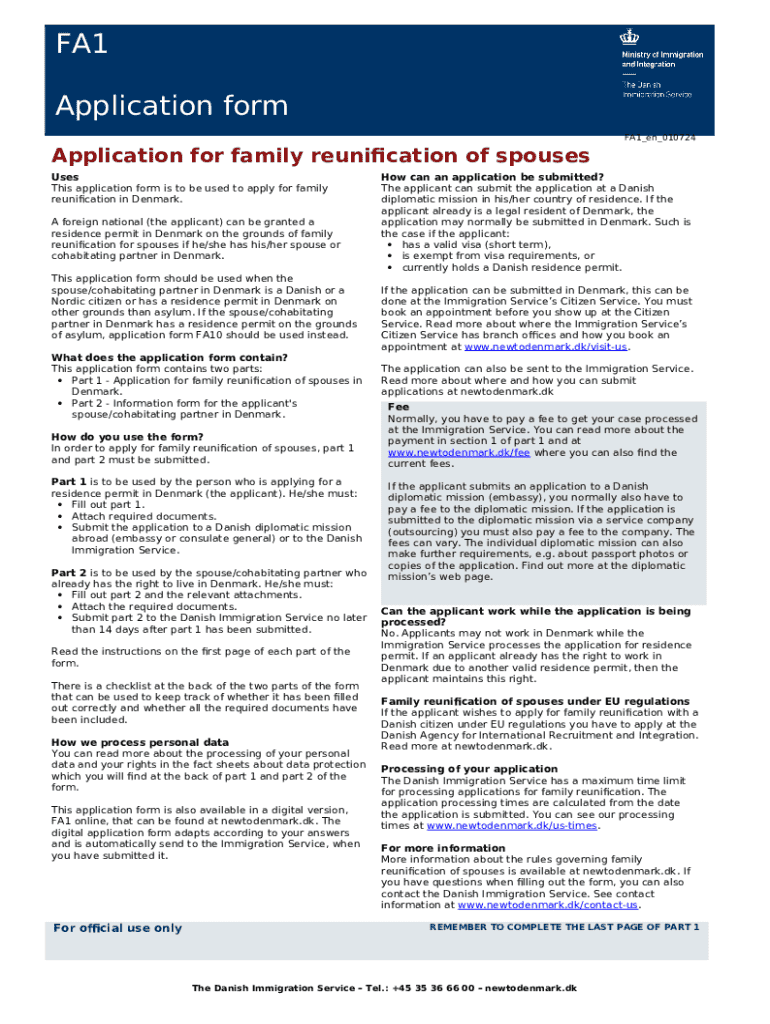 Frequently asked questions about FA1 - Application For Family Reunification of Spouses template