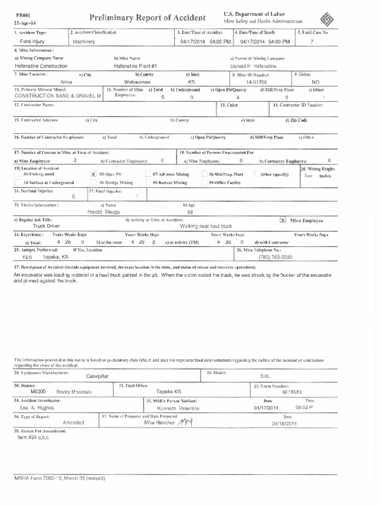 Get the free Preliminary Report of Accident