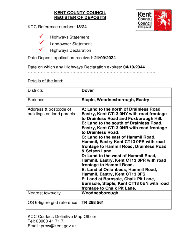 Highways DeclarationDate Deposit application received: 24/09/2024