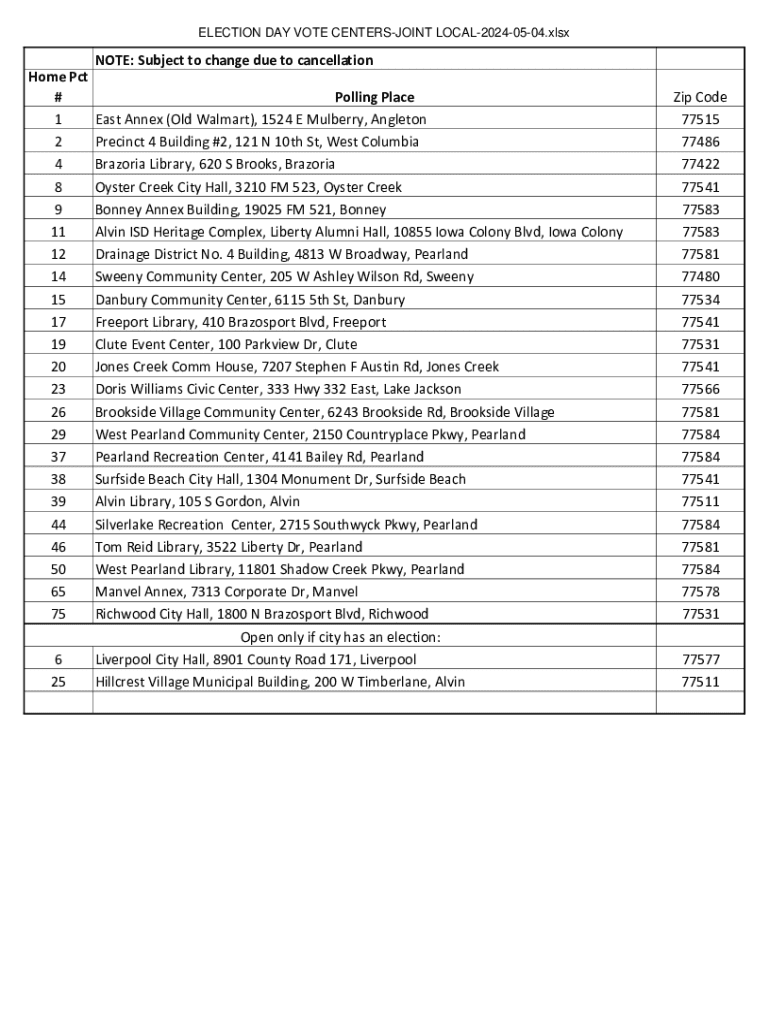 ELECTION DAY VOTE CENTERSJOINT LOCAL20240504.Elsinore: Subject to change due to cancellation