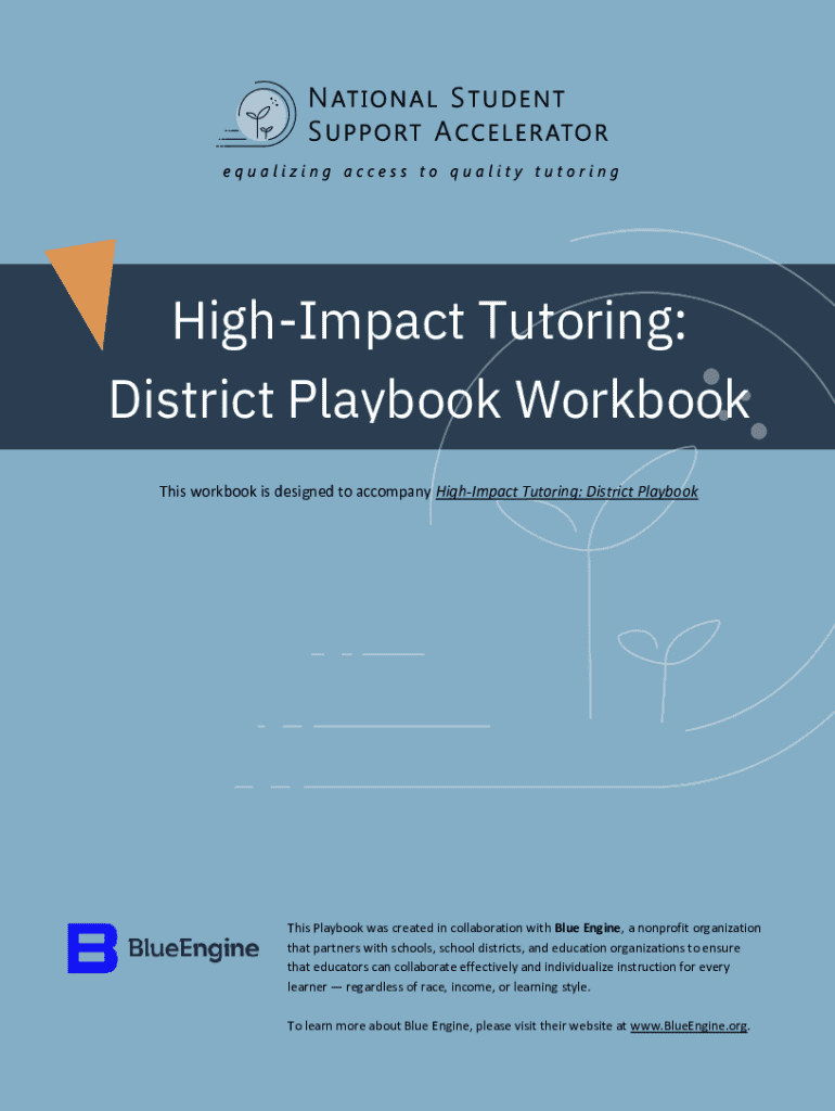 This workbook is designed to accompany HighImpact Tutoring: District Playbooks Playbook was created in collaboration with Blue Engine, a nonprofit organization