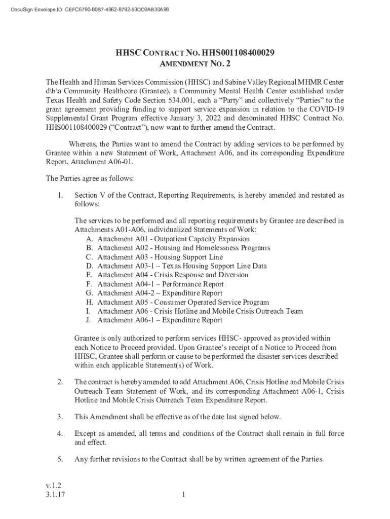 HHSC CONTRACT NO. HHS001108400029 AMENDMENT NO. 2 The Health and Human Services Commission (HHSC) and Sabine Valley Regional MHMR Center dba Community Healthcore (Grantee), a Community Mental Health
