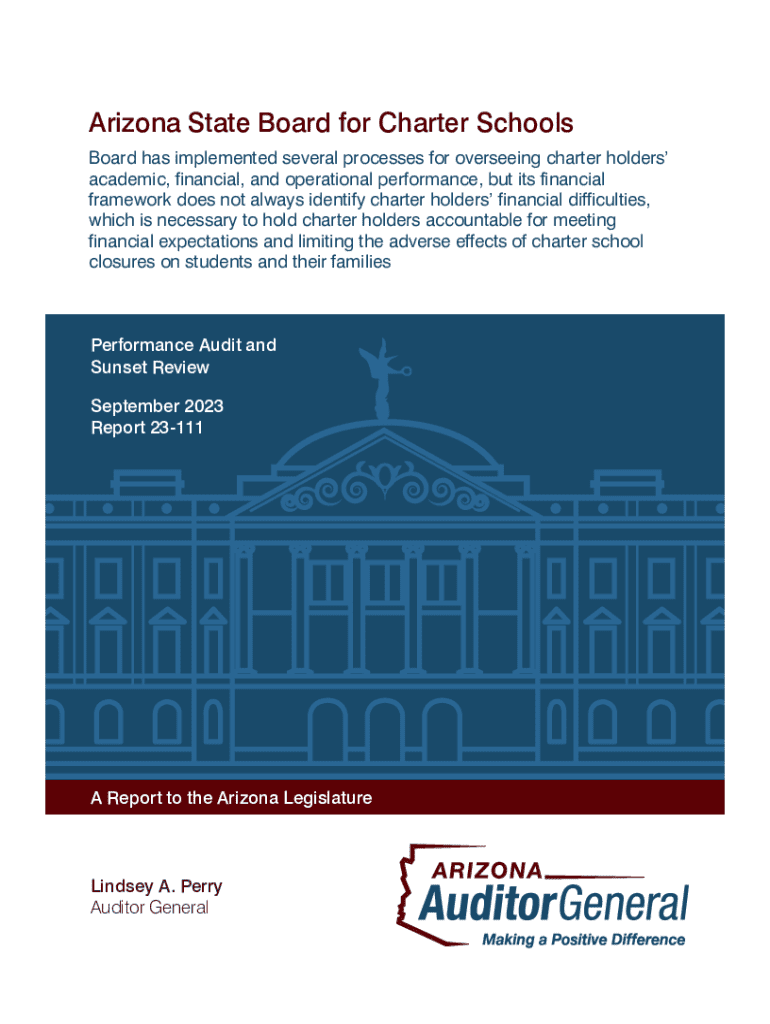 Arizona State Board for Charter Schools Board has implemented several processes for overseeing charter holders academic, financial, and operational performance, but its financial framework does not