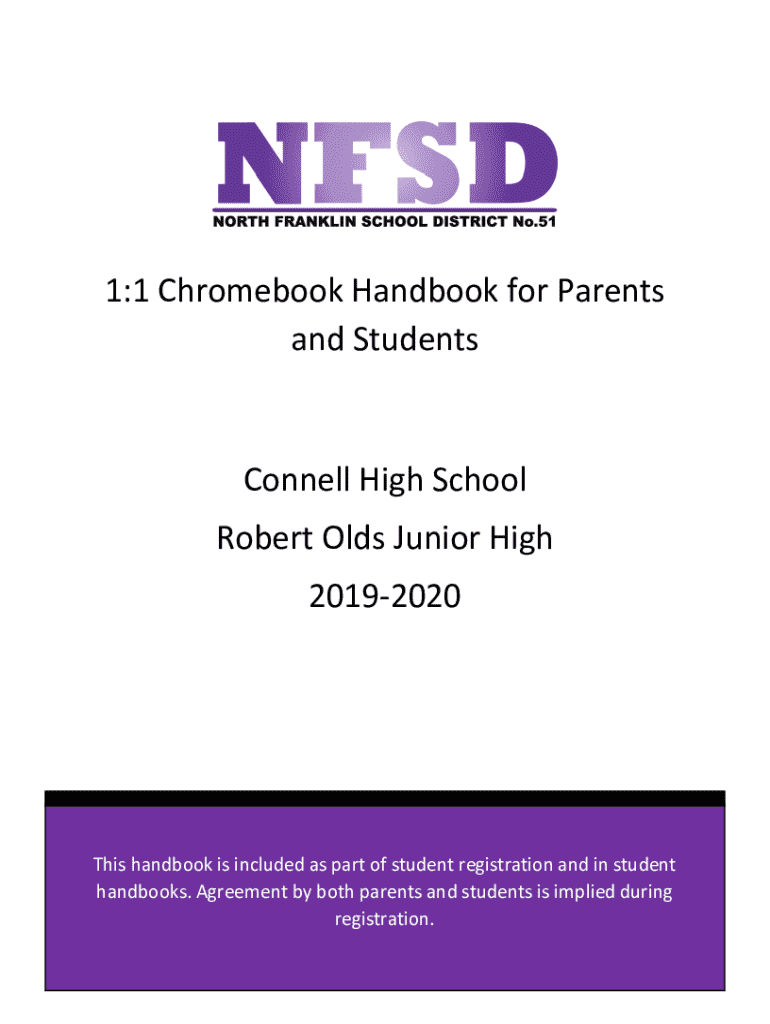 1:1 Chromebook Handbook for Parents and Students School Year 20192020Connell High School Robert Olds Junior High 20192020This handbook is included as part of student registration and in student handbooks.