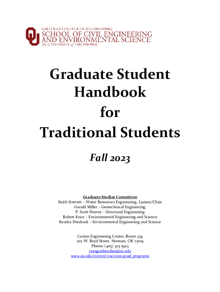 Graduate Student Handbook for Traditional Students Fall 2023Graduate Studies Committee Keith Street Water Resources Engineering, Liaison/Chair Gerald Miller Geotechnical Engineering P. Scott Harvey