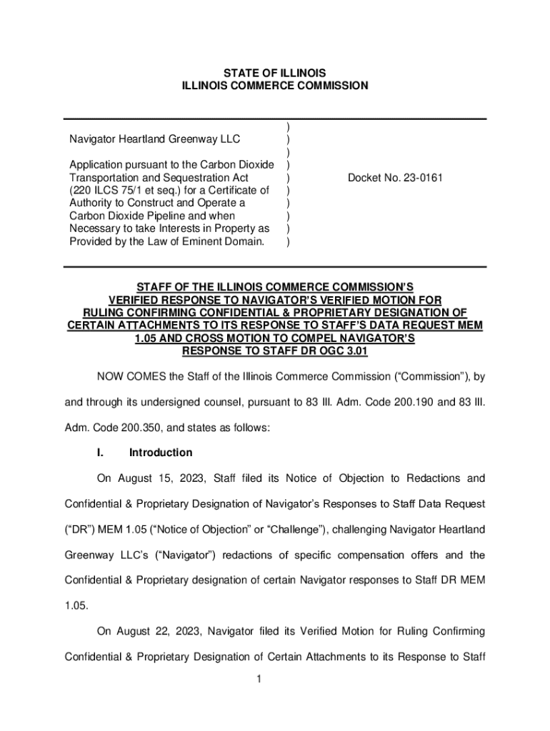 STATE OF ILLINOIS COMMERCE COMMISSIONNavigator Heartland Greenway LLC Application pursuant to the Carbon Dioxide Transportation and Sequestration Act (220 ILLS 75/1 et seq.) for a Certificate of Authority